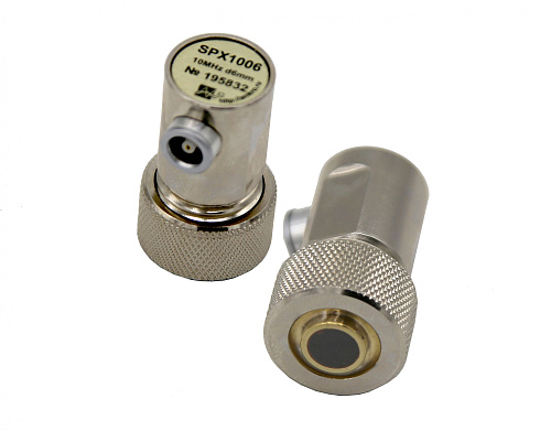 Преобразователь прямой совмещенный со сменными полиуретановыми протекторами. Предназначен для контроля изделий с грубой поверхностью.