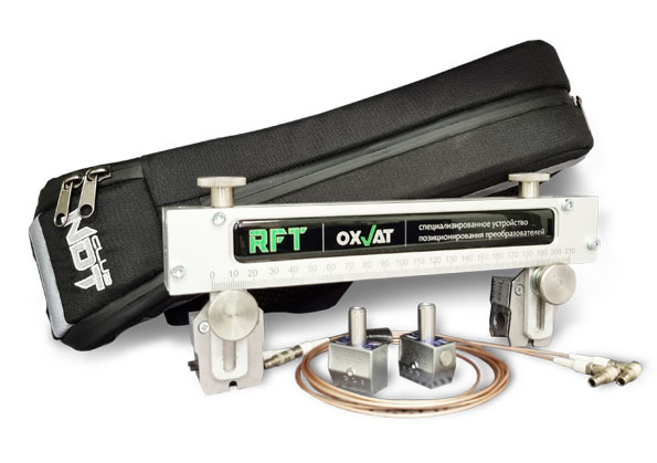 RFT OXVAT - это специализированное устройство позиционирования преобразователей, предназначенное для реализации эхо-зеркального (тандем) и зеркально-теневого методов ультразвукового контроля. Это механическое приспособление с двумя подвижными каретками, позволяющее оператору установить преобразователи точно и надежно для проведения контроля объектов различных форм и размеров.