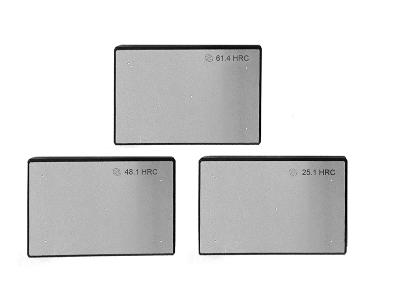 Для твердомеров прямого действия (стационарных) используются все 5 видов мер по 3 шкалам (HRA, HRB, HRC). Для твердомеров косвенного действия (портативных) обычно применяются только 3 меры HRC.